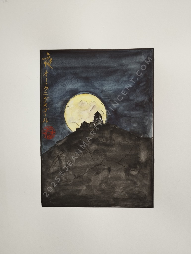 Je vous invite à découvrir cette série d’aquarelles, un mélange d’hommage à l’iconique Mont Fuji et à notre cher Haut-Koenigsbourg. Ces œuvres sont une exploration de l’art, de la culture et de la nature, où se mêlent influences nippones et alsaciennes. D’autres créations viendront compléter cette série, alors restez à l’écoute pour les prochaines !