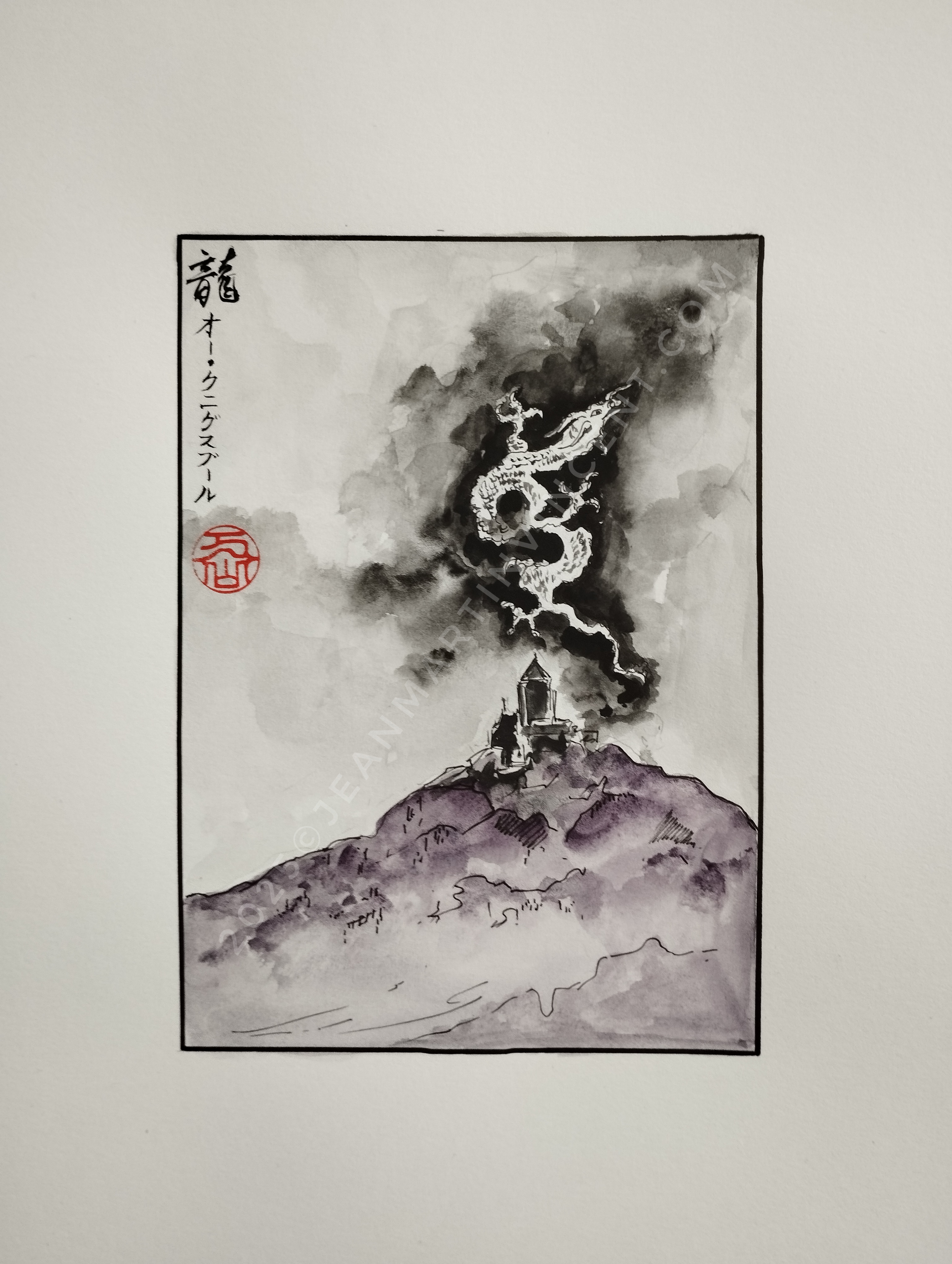 La nuit tombée, le Haut-Koenigsbourg s’élève sous un ciel étoilé. La sérénité de la nuit se mêle à une touche de mystère, une invitation à l’introspection, comme un écho aux impressions que l’on trouve dans les estampes japonaises de nuit. - 龍 (Dragon) – Vue surnaturelle